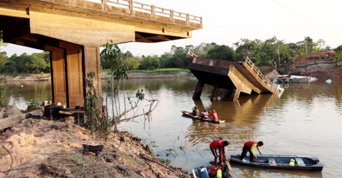 বুধবার (২৮ সেপ্টেম্বর) আমাজোনাস ফায়ার ডিপার্টমেন্ট থেকে জানিয়েছে যে, প্রাদেশিক রাজধানী মানাউস থেকে প্রায় ১০০ কিলোমিটার দক্ষিণে অবস্থিত শহর কেরিরোর বিআর-৩১৯ হাইওয়েতে কংক্রিটের সেতুটি ধসে পড়ে। খবর পেয়ে উদ্ধার অভিযান চালানো হচ্ছে।