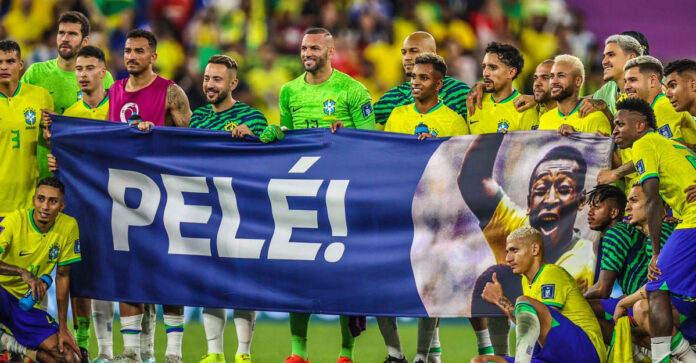ম্যাচের শেষ বাঁশি। কোয়ার্টারে উঠার আনন্দ সেভাবে উদযাপন হলো না। সাইড বেঞ্চে থাকা নেইমার দৌড়ে গেলেন মাঠে। পেলের ছবি দিয়ে ব্যানার নিয়ে দাঁড়িয়ে পড়লেন সবাই।