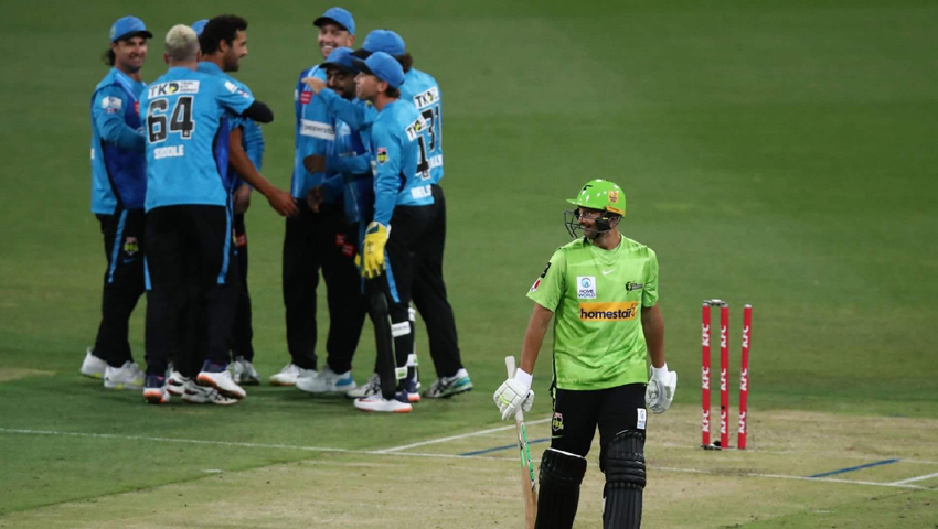কলিন ডি গ্র্যান্ডহোম ও ক্রিস লিনের ব্যাটে লড়াইয়ের ১৩৯ রানের পুঁজি পেয়েছিল অ্যাডিলেড স্ট্রাইকার্স। সহজ লক্ষ্য তাড়া করতে নেমে শুরু থেকেই ছন্নছড়া ছিল সিডনি থান্ডার। সব উইকেট হারিয়ে দলটির সংগ্রহ মাত্র ১৫ রান!