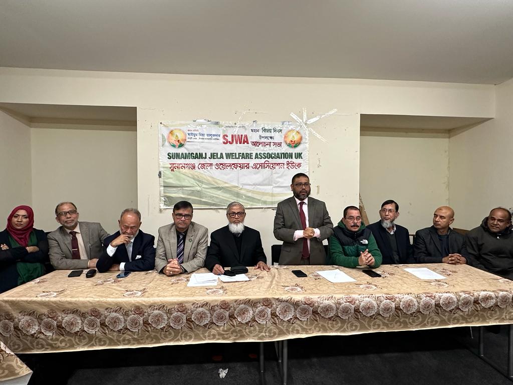 লন্ডন অফিস: কমিউনিটির বিশিষ্ট জনদের নিয়ে লন্ডনে সুনামগঞ্জ জেলা ওয়েলফেয়ার এসিসোয়েশন ইউকে বিজয় দিবস উদযাপন করেছে। বুধবার সন্ধ্যায় ব্রিকলেইন মসজিদ হলে অনুষ্টিত বিজয় দিবস অনুষ্ঠানে সভাপতিত্ব করেন সংগঠনের ভারপ্রাপ্ত সভাপতি আহবাব মিয়া।