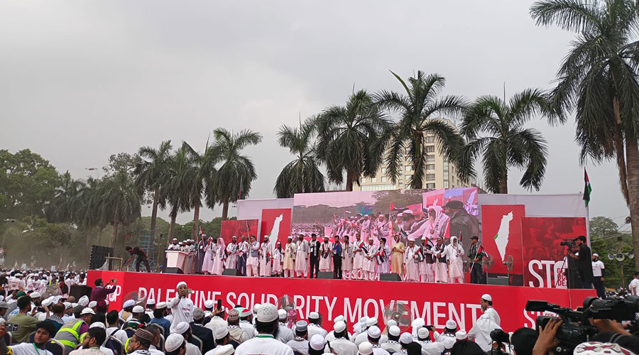 টাইমস অব ইসরায়েলের প্রতিবেদনে বলা হয়েছে, হাজার হাজার বিক্ষোভকারী বাংলাদেশের রাজধানীতে গাজায় ইসরায়েলের হামলার নিন্দা জানাতে র‍্যালি করেছেন। ঢাকা বিশ্ববিদ্যালয় এলাকার সোহরাওয়ার্দী পার্কে প্রায় ১ লাখ বিক্ষোভকারী জড়ো হয়েছিলেন। তাঁদের হাতে ছিল কয়েক শ ফিলিস্তিনি পতাকা। সেখানে তাঁরা ‘ফ্রি ফ্রি, ফিলিস্তিন’-এর মতো স্লোগান দিয়েছেন।